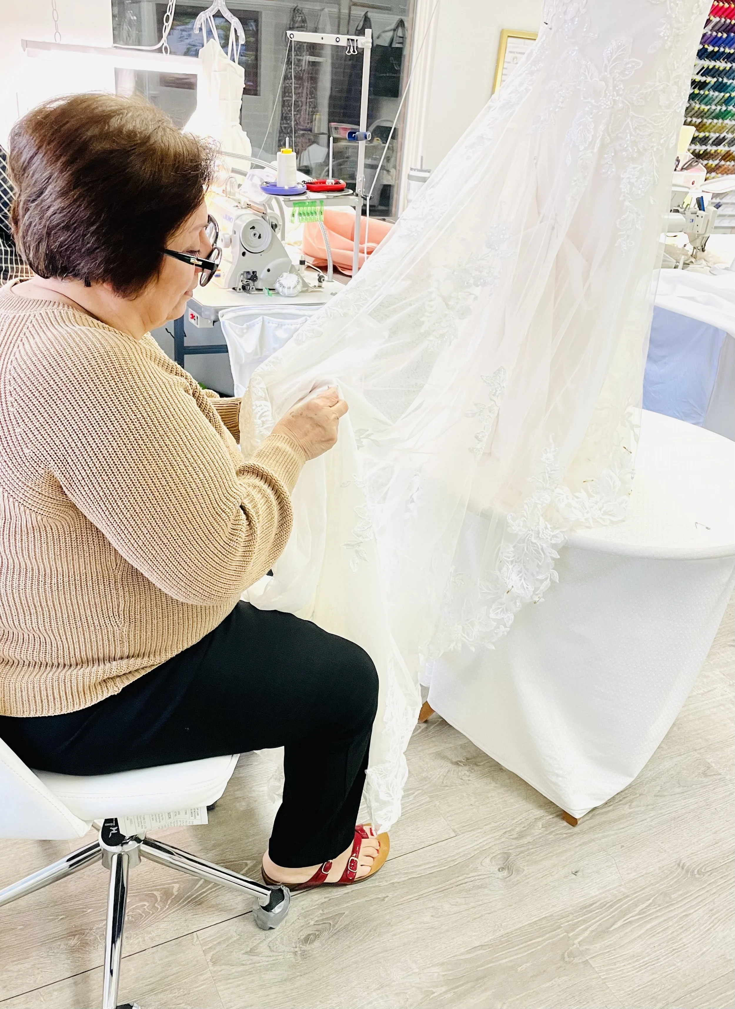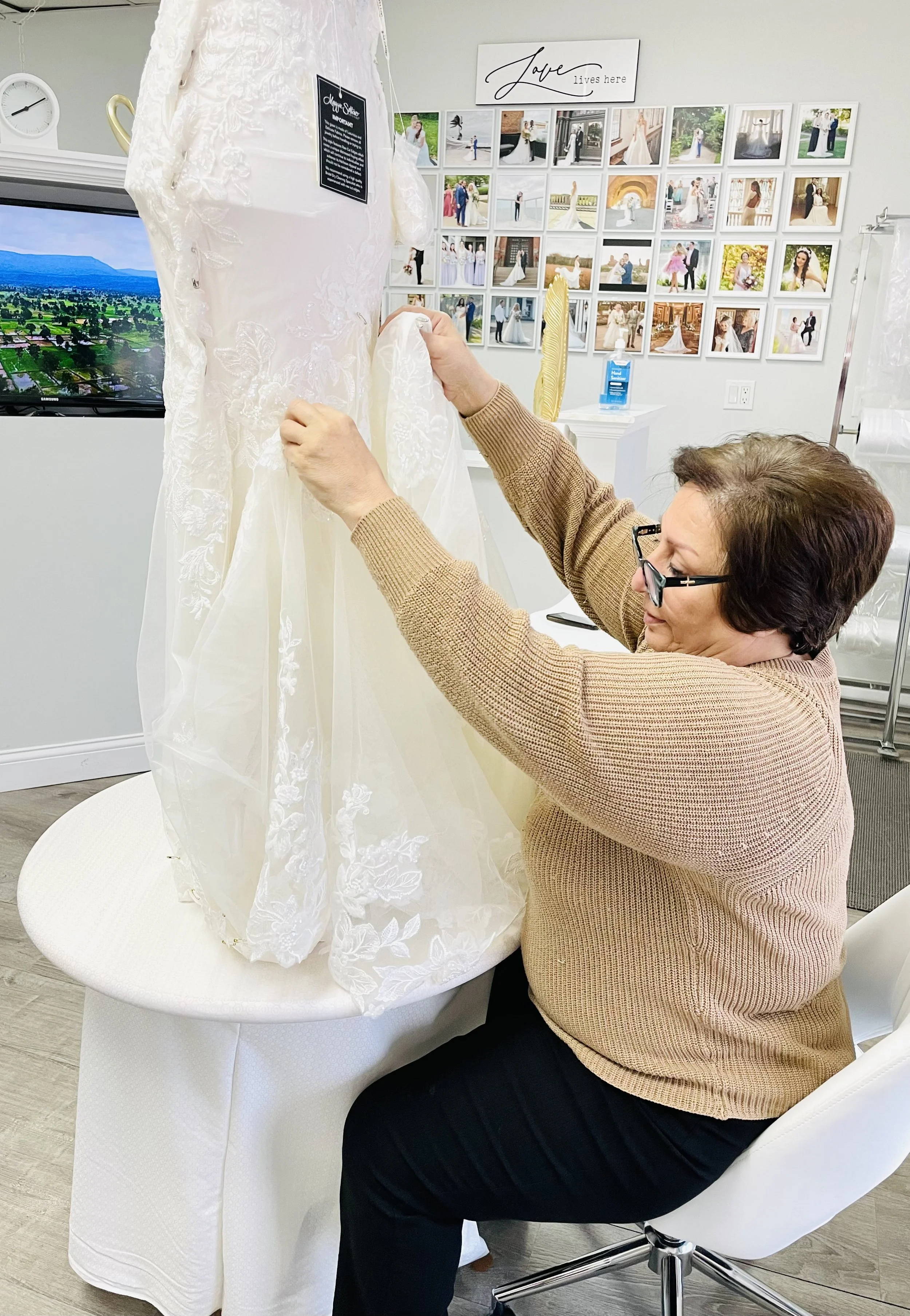 No more kneeling or crouching down to pin hems or bustles, which causes knee and back strain.
